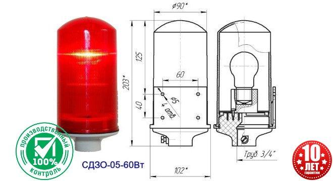аградительный огонь малой интенсивности СДЗО-05-60Вт, это модель светосигнального устройства, сочетающая в себе хорошие оптико-физические показатели, подтверждённые десятилетней гарантией на корпус светоарматуры и доступность. Изделие зарекомендовало себя, как надёжное решение с прекрасными эксплуатационными характеристиками. Модель представлена рынку в 2011 году, за истекший период эксплуатации, рекламационных заявлений не поступало. Достоинством данной модели являются современный, лёгкий, проверенный временем, корпус заградительного огня, относительно небольших габаритов и привлекательная цена. Контроль качества на всех этапах производства и отгрузки продукции, позволяет исключить случаи рекламаций.